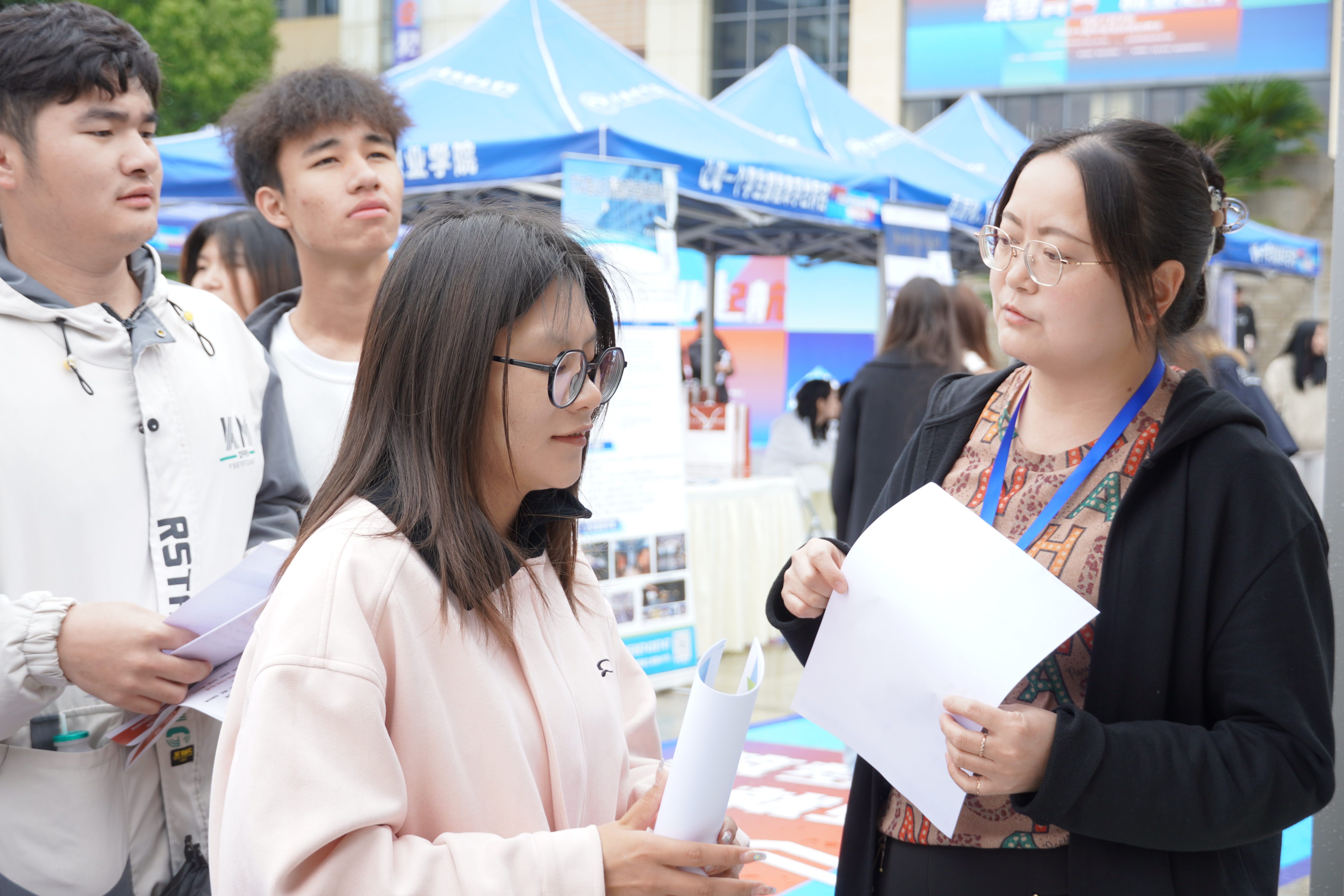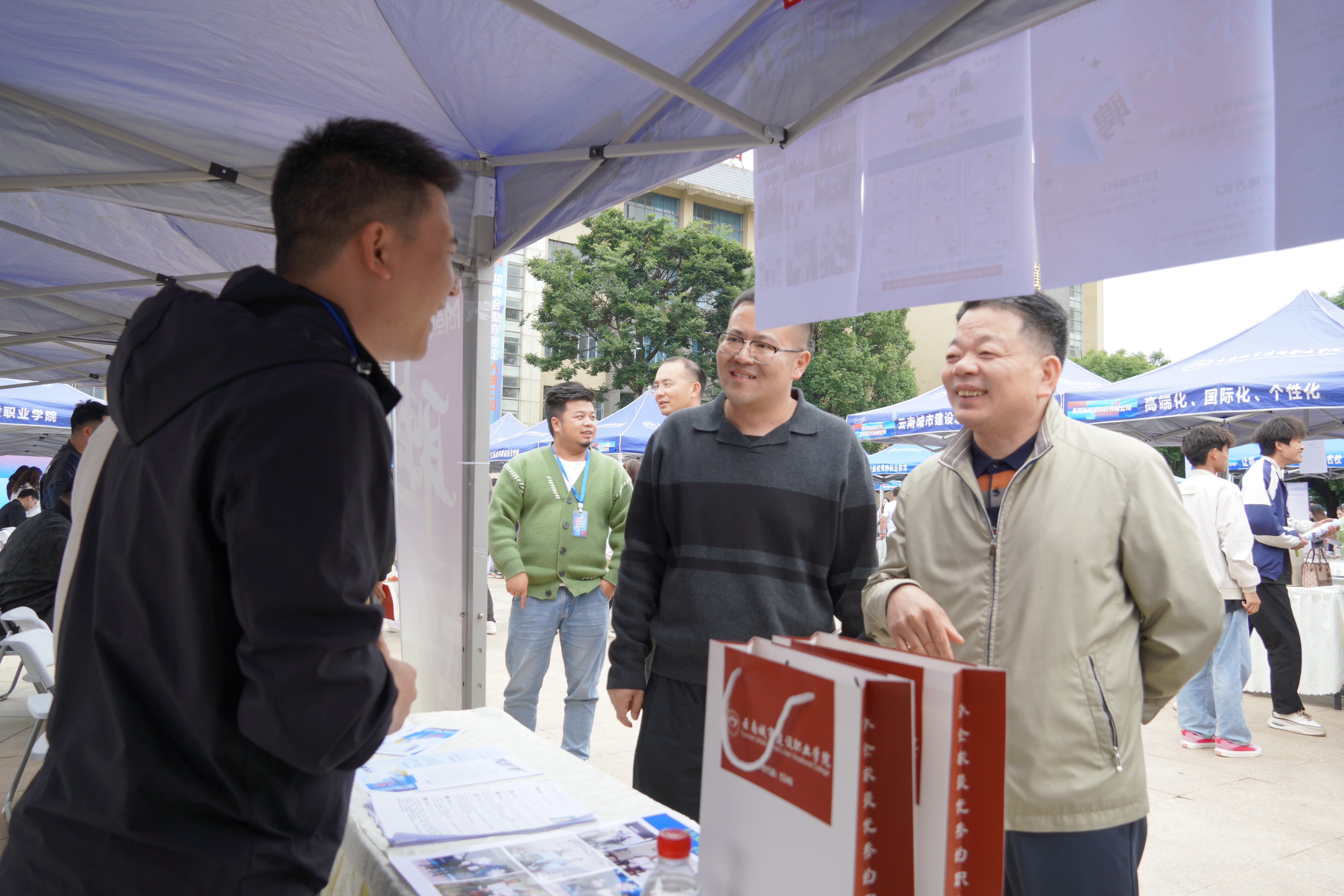 招聘会现场,学校党委书记郭云龙深入学生群体,翻阅毕业生简历并提出建议,对学生简历投递情况进行详细了解,同时与前来招聘的企业围绕企业需求、人才培养、校企合作等方面进行深入交流。