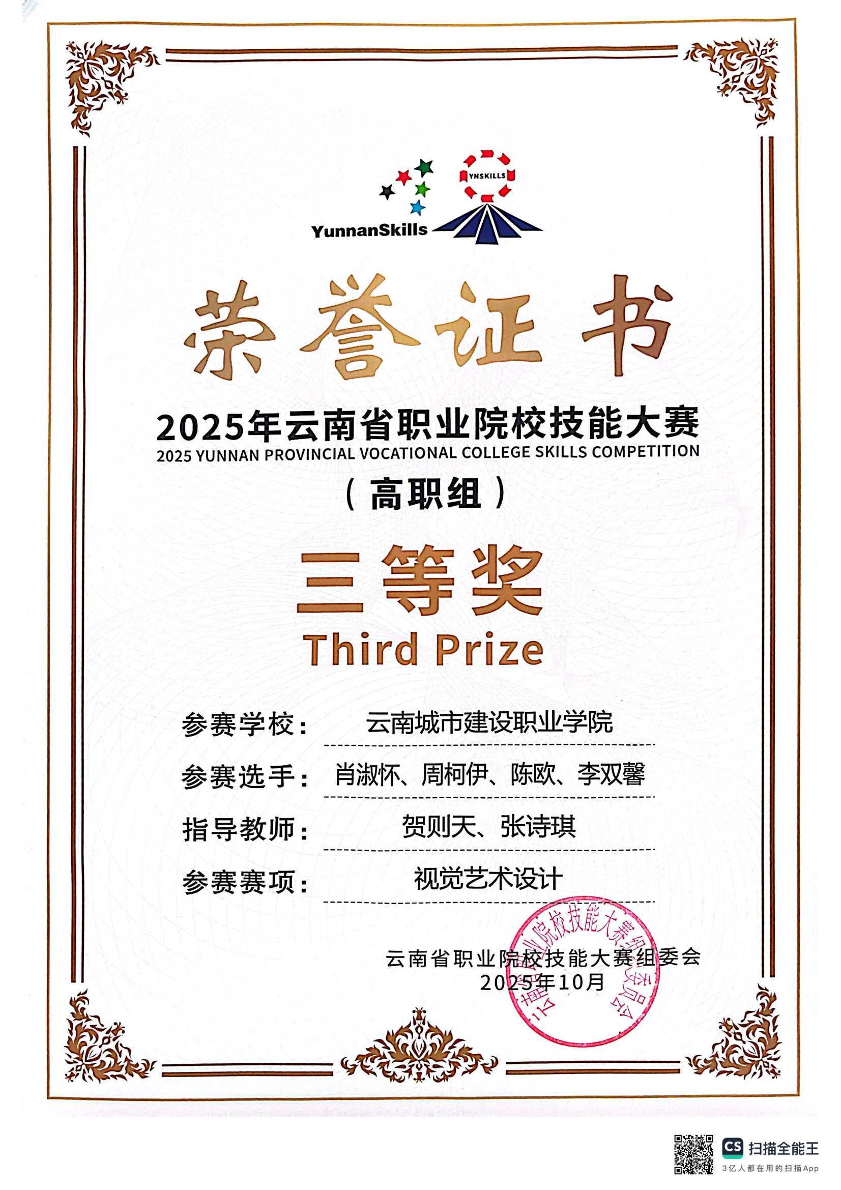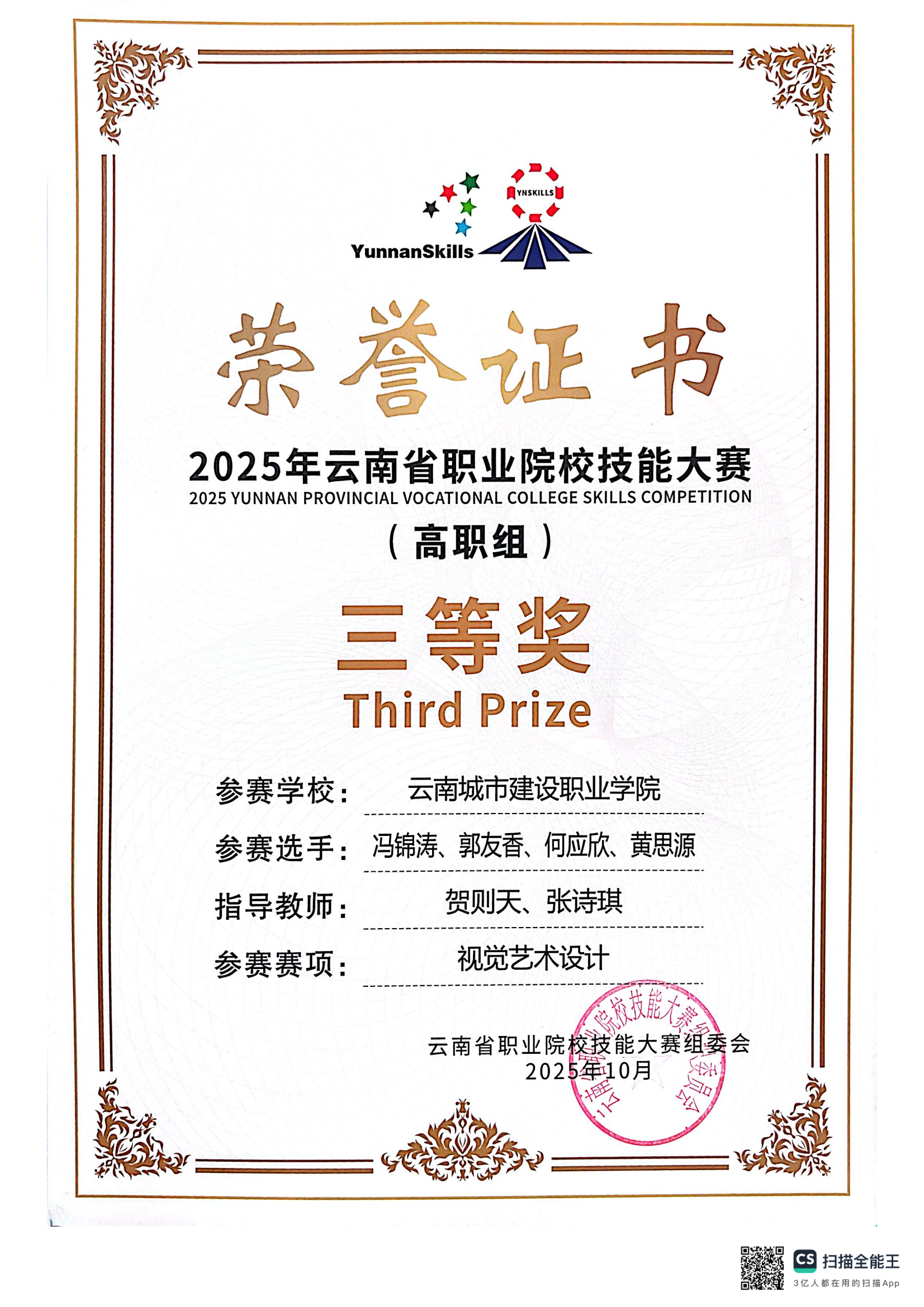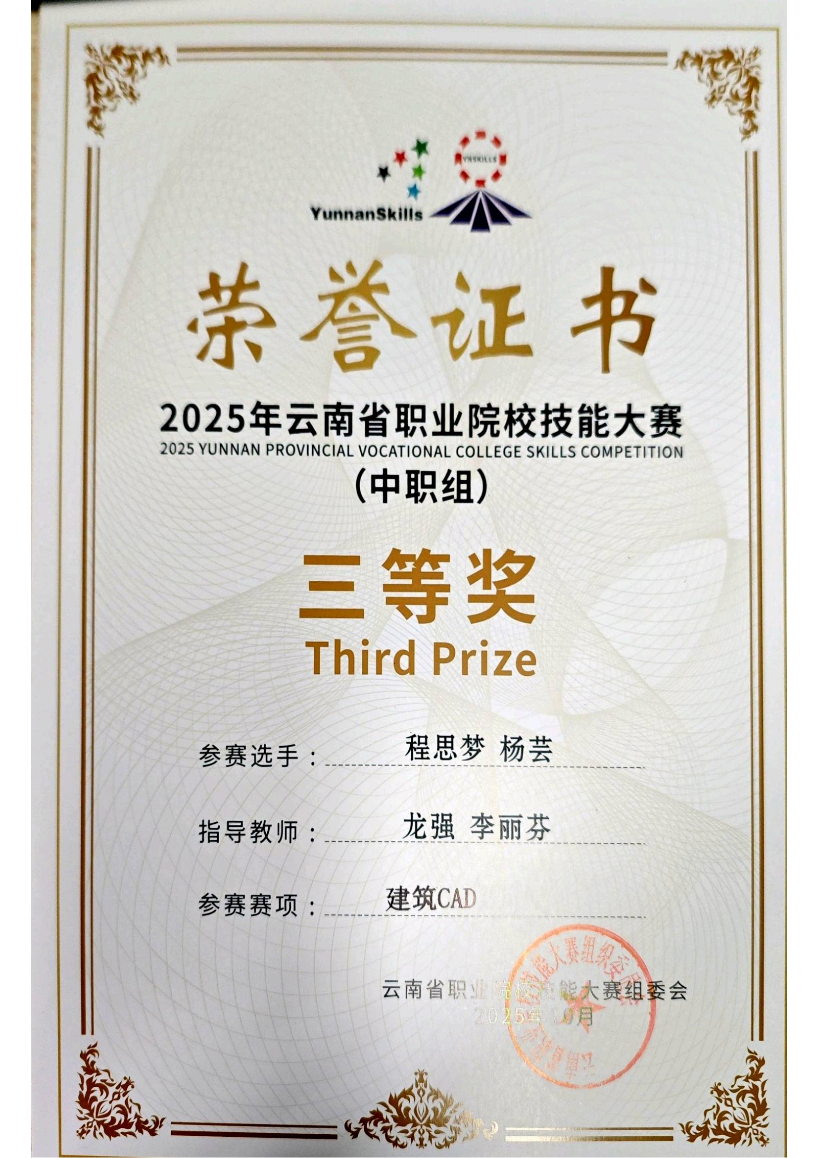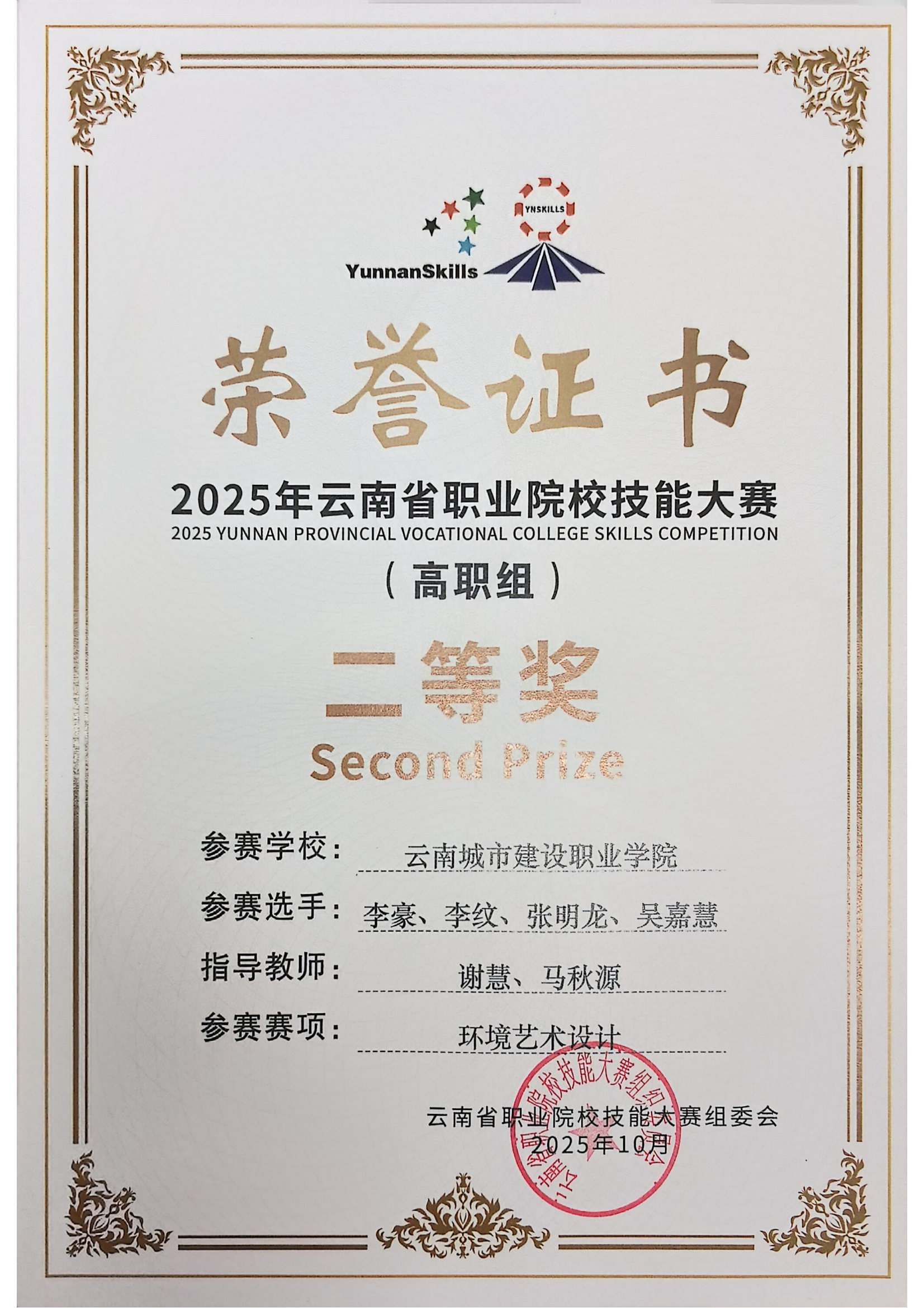 近日,2025年云南省职业院校技能大赛落下帷幕,在云南城市建设职业学院新视界设计产业学院、鲁班智能建造产业学院的支持下,学校数智城市学院参赛团队师生斩获二等奖4项,三等奖9项,实现学校在新兴技能领域的突破。