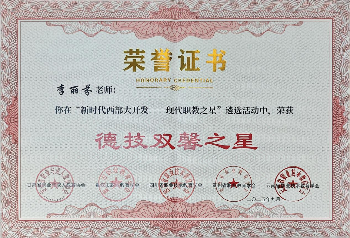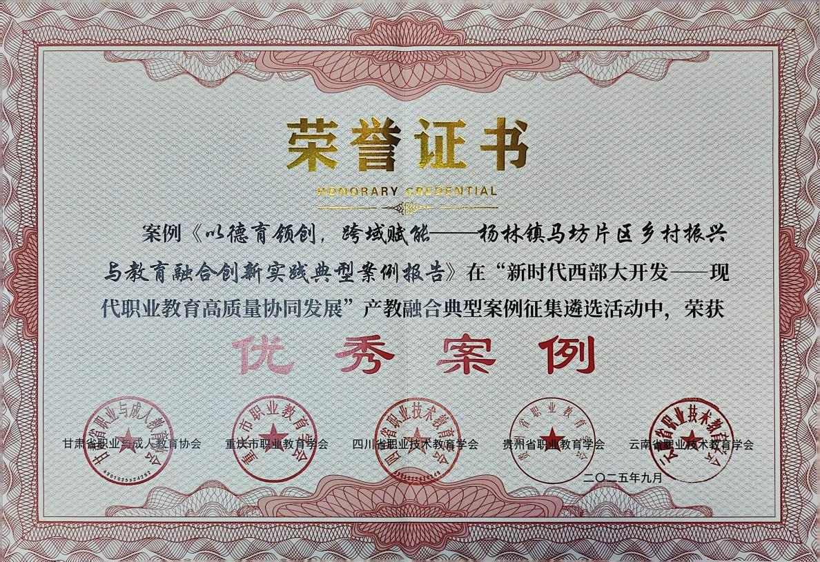 近日,云南省职业技术教育学会2025年年会暨职业教育高质量发展研讨会在曲靖召开,会议对在“新时代西部大开发—现代职教之星“及产教融合典型案例评选中表现突出的单位和个人进行了表彰,学校数智城市学院李丽芬老师荣获“德技双馨之星”称号,建筑室内设计专业杨立喆同学荣获“技术技能之星”称号,《以德育领创,跨域赋能——杨林镇马坊片区乡村振兴与教育融合创新实践典型案例》获评“优秀案例”并入选全省20项“产教融合典型案例”。