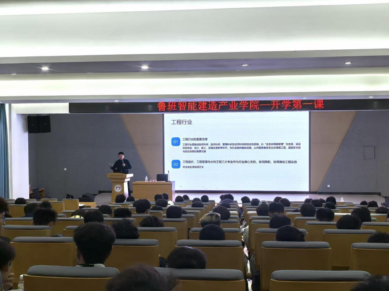 为紧扣建筑行业数字化、智能化、绿色化转型趋势,落实产教融合育人要求,进一步明确土建水利类专业的职业发展方向、为梳理学习路径。近日,云南城市建设职业学院鲁班智能建造产业学院开展“开学第一课”专题讲座。本次活动特邀云南银信工程造价咨询有限公司黄冲总经理主讲,数智城市学院建筑工程技术、工程造价教研室全体教师及各年级土建水利类专业学生共150余人参与本次活动。